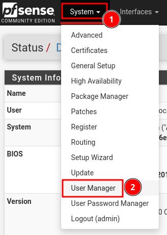 Menu « System » puis « User Manager ».
