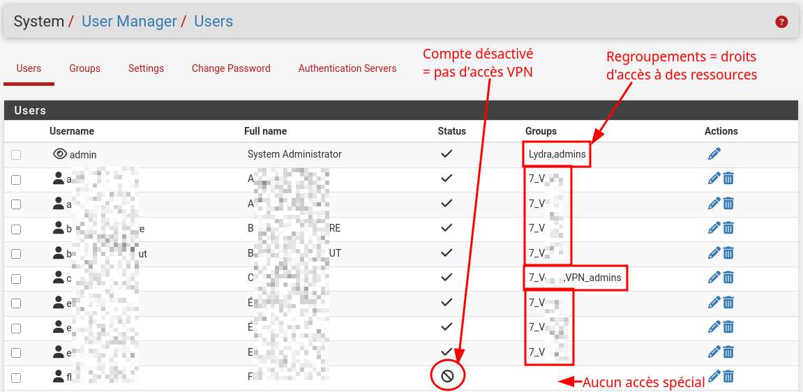 sont désactivés et n’ont pas d’accès VPN non plus.